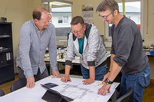 Angefangen von Entwurf, Planung und Bauantragsstellung bis hin zum schlüsselfertigen Gesamtpaket mit Ausschreibung der Gewerke, Bauleitung, Abnahme und Abrechnung.